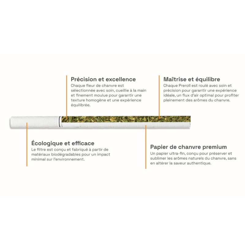 Pour préserver les qualités organoleptiques de ces cigarettes biologiques, il convient de conserver le paquet dans un environnement sec, à l'abri de la lumière directe et des variations thermiques importantes. Cette précaution maintient la fraîcheur des fleurs de chanvre et préserve l'intégrité des cannabinoïdes actifs.