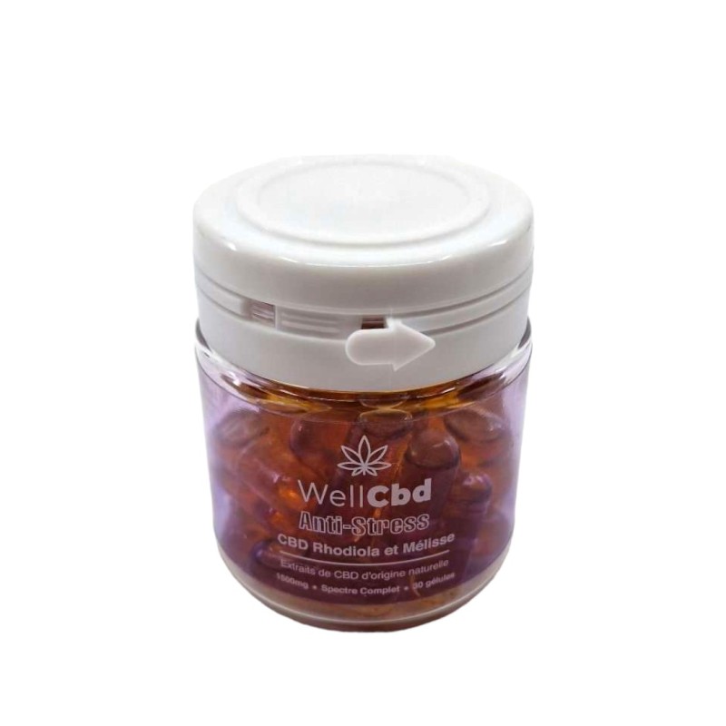Retrouvez votre équilibre naturellement avec les gélules CBD anti-stress WELL CBD. Cette formule unique associe 50mg de CBD full spectrum par capsule à des extraits premium de rhodiola et mélisse, reconnus pour leurs propriétés apaisantes. Chaque flacon contient 30 gélules pour une cure complète d'un mois.