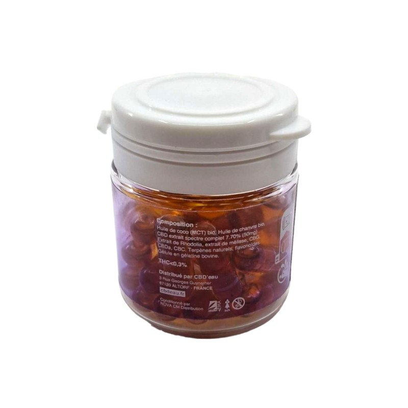Chaque gélule contient des ingrédients soigneusement sélectionnés : huile de chanvre biologique, extraits de rhodiola, mélisse officinale et huile MCT de coco biologique. Cette synergie naturelle optimise l'absorption des principes actifs tout en respectant votre organisme. La gélatine bovine assure une libération progressive des composés dans votre système digestif.