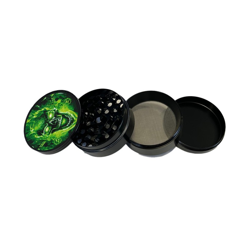 L'esthétique remarquable de ce broyeur Green Skulls arbore des motifs de têtes de mort dans des teintes vert et jaune éclatantes qui ne passent pas inaperçues. Chaque modèle présente des variations artistiques uniques, permettant à chaque utilisateur de trouver le design qui correspond parfaitement à sa personnalité. La qualité d'impression des motifs résiste à l'usure quotidienne et conserve ses couleurs vives dans le temps.