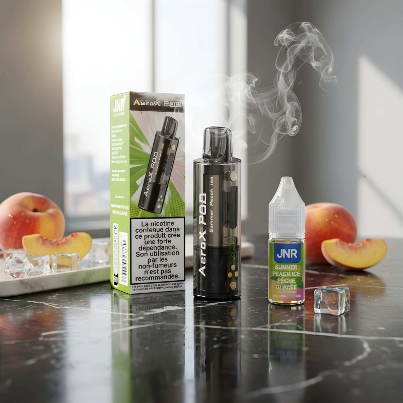 Le Pod JNR AeroX Summer Peach Ice révolutionne votre expérience de vapotage avec son kit complet incluant un e-liquide 10ml aux sels de nicotine. Cette solution rechargeable premium combine innovation technologique et respect environnemental, offrant une autonomie remarquable de 32000 bouffées.