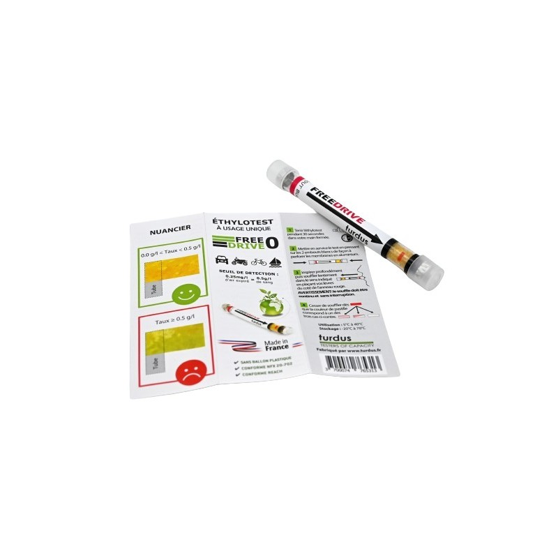 L'éthylotest chimique TURDUS Free Drive Zero représente une solution française de qualité supérieure pour contrôler votre taux d'alcoolémie avant de prendre le volant. Homologué selon les normes NFX 20-702 et conforme au décret français 2015-775, ce dispositif à usage unique garantit des résultats précis et fiables en quelques minutes seulement.