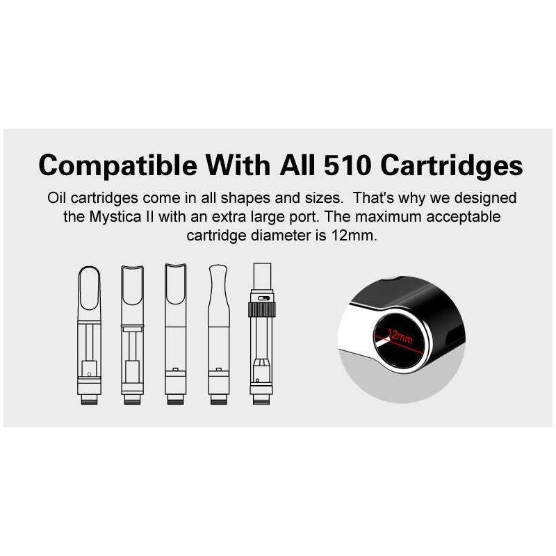 L'adaptabilité du Mystica 2 en fait un choix de premier plan pour les amateurs de CBD sous toutes ses formes. Le système d'adaptateurs magnétiques fourni comprend différentes tailles d'anneaux, assurant une compatibilité parfaite avec les cartouches d'huile CBD, les concentrés de wax CBD et les cartouches standard 510. Cette polyvalence remarquable vous permet d'explorer diverses textures et concentrations sans changer d'appareil.